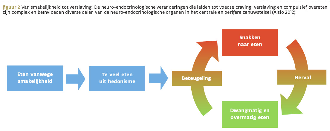 Figuur 5 toont het model voor voedselcraving en -verslaving bij de mens dat door de onderzoeksgroep van Olszewski voorgedragen werd (Alsio 2012).