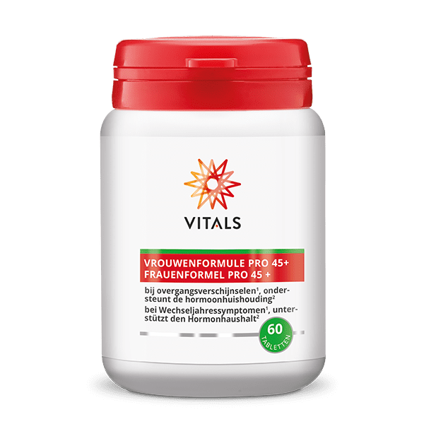 Na de levensfase waarin het vrouwenlichaam voortdurend onderhevig is aan de vrouwelijke hormonale cyclus, breekt er vanaf ongeveer het 45e levensjaar een periode aan waarbij er een nieuw evenwicht in het hormonale systeem van de vrouw gaat ontstaan, met minder hormonale schommelingen en meer stabiliteit. De overgang naar deze volgende levensfase, kan bij sommige vrouwen helaas gepaard gaan met vervelende overgangsverschijnselen zoals opvliegers, prikkelbare gevoelens en nachtzweten. Vrouwenformule Pro 45+ is een zorgvuldig samengestelde formule met ingrediënten die bij uitstek geschikt zijn om ondersteuning te bieden tijdens de overgangsperiode. Er is gekozen voor kruiden van een zo hoog mogelijke kwaliteit en zuiverheid, en met een zo sterk mogelijke wetenschappelijke onderbouwing. Een uniek product op dit gebied dat vrouwen vanaf 45 jaar kan helpen om ook tijdens de overgang mentaal en fysiek in balans te blijven.